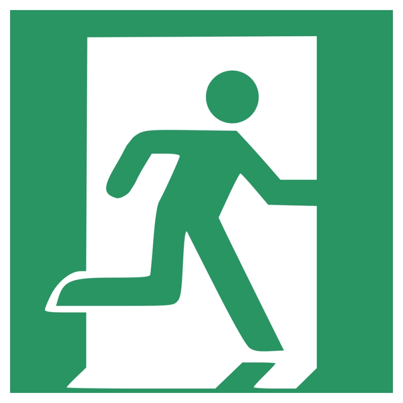 1x 45° pijlsticker + Man-sticker links of rechts voor onze Vella vluchtrouteverlichting en/of Vella-schijf