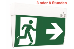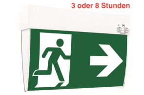 F1U383AT2.V5 , eenvoudige en energiezuinige, dubbelzijdig zichtbare nooduitgangverlichting voor plafond- of wandmontage. Met een brandduur van 3 of 8 uur.